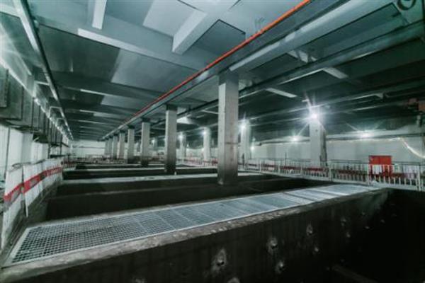 西安市第三污水處理廠并不只是簡單將地上的污水處理廠“下沉”,而是在充分考慮各類安全風險等因素后,重新統籌功能分區,實現資源整合的最優配置。項目采用分層布置形式,地下一層為操作層,為設備調控中心和人力檢修中心,地下二層為水處理構筑物和綜合管廊,污水處理廠的曝氣池、沉淀池等在這里“一應俱全”。同時,項目團隊結合施工方案對地下空間進行多維度優化,形成立體三維布置,通過優化工藝流程、重組單元組團、修改構筑物布局等方式,提升空間利用效率,將項目占地用地減少了三分之二。